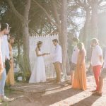 A la base du projet il y avait l'envie de réaliser un shooting d'inspiration pour récréer un vrai mariage, tout en intimité. Quelque chose de très simple pour témoigner de l'essence même d'un mariage. La simplicité de fêter l'amour véritable entre deux personnes. On a donc choisi Monica&Marc, amoureux depuis plusieurs années, pour cet elopement privé. Du début à la fin, grâce à Sandra, de Cardellach Interiors & Events, tout a été planifié, des préparatifs à la soirée.
