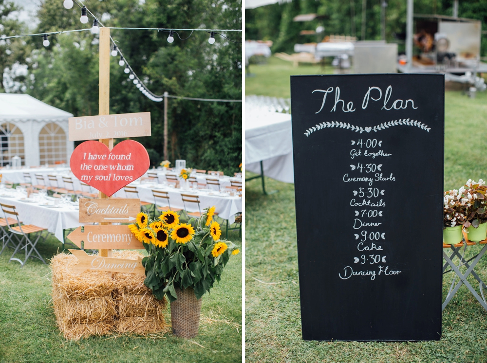 En nous mariant en France, nous voulions évidemment un thème "français", champêtre, avec du jaune en couleur dominante et des tournesols pour les fleurs.