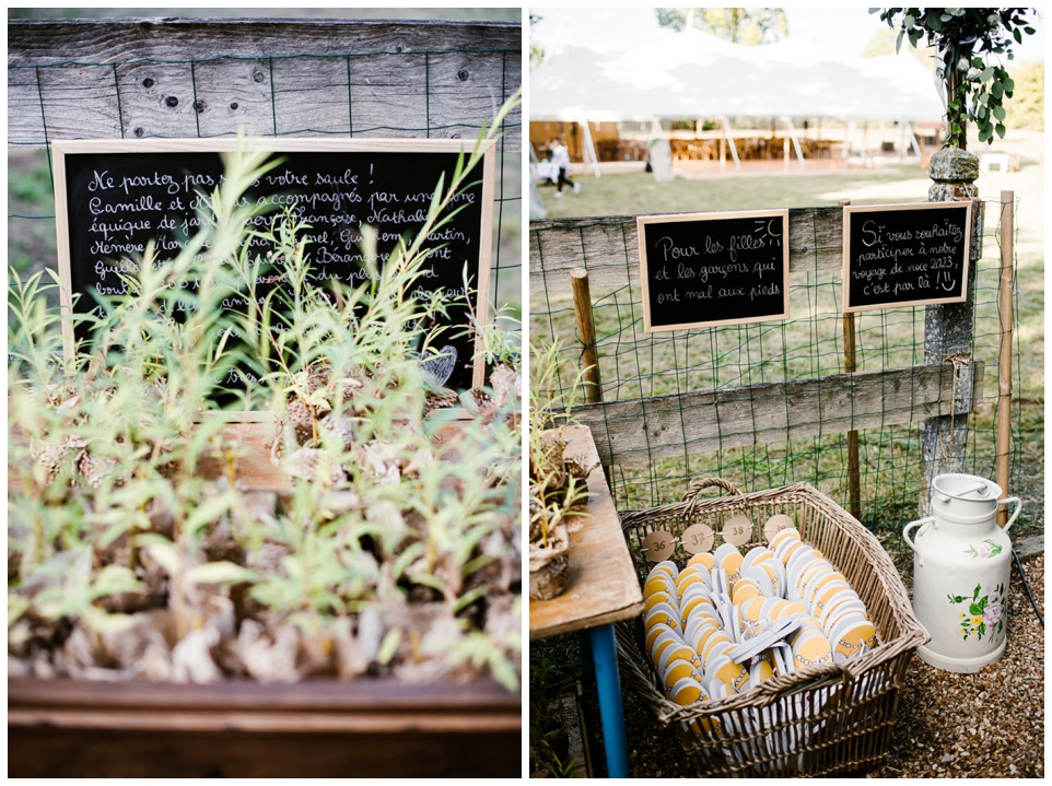 Nous avions, 6 mois avant, fait 300 boutures de notre saule pleureur pour que chaque invité reparte avec son petit saule, petit clin d’œil à la demande en mariage. Un cadeau largement apprécié !