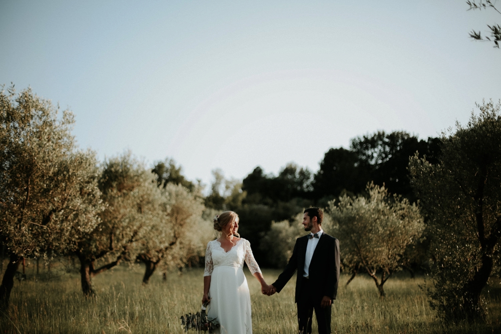 Nous avons également pris le temps de s’échapper pendant le vin d’honneur tous les deux avec notre photographe Marie-Laure (Soul Pics) pour des photos de couple durant la golden hour. Certains invités l’ont à peine remarqué, et au vu des photos on ne regrette pas...