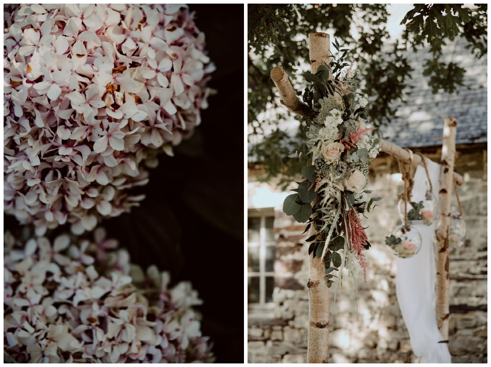 Fleuriste : La Fabrique Végétale Gros coup de coeur pour le travail d’Anne-Sylvie. Son atelier étant à Rennes et nous habitant à Paris, nous ne l’avons pas rencontrée avant la veille du mariage. Nous avons eu un long échange téléphonique pour faire le point sur nos envies, puis elle nous a partagé plein de photos d’inspiration qu’elle a actualisé au fil du temps. Elle a vraiment su capter ce que nous voulions et le rendu était exactement celui que nous souhaitions, c’était fou ! Du bouquet au fleurissement de la cérémonie laïque, en passant par la décoration des tables, elle a été absolument parfaite.