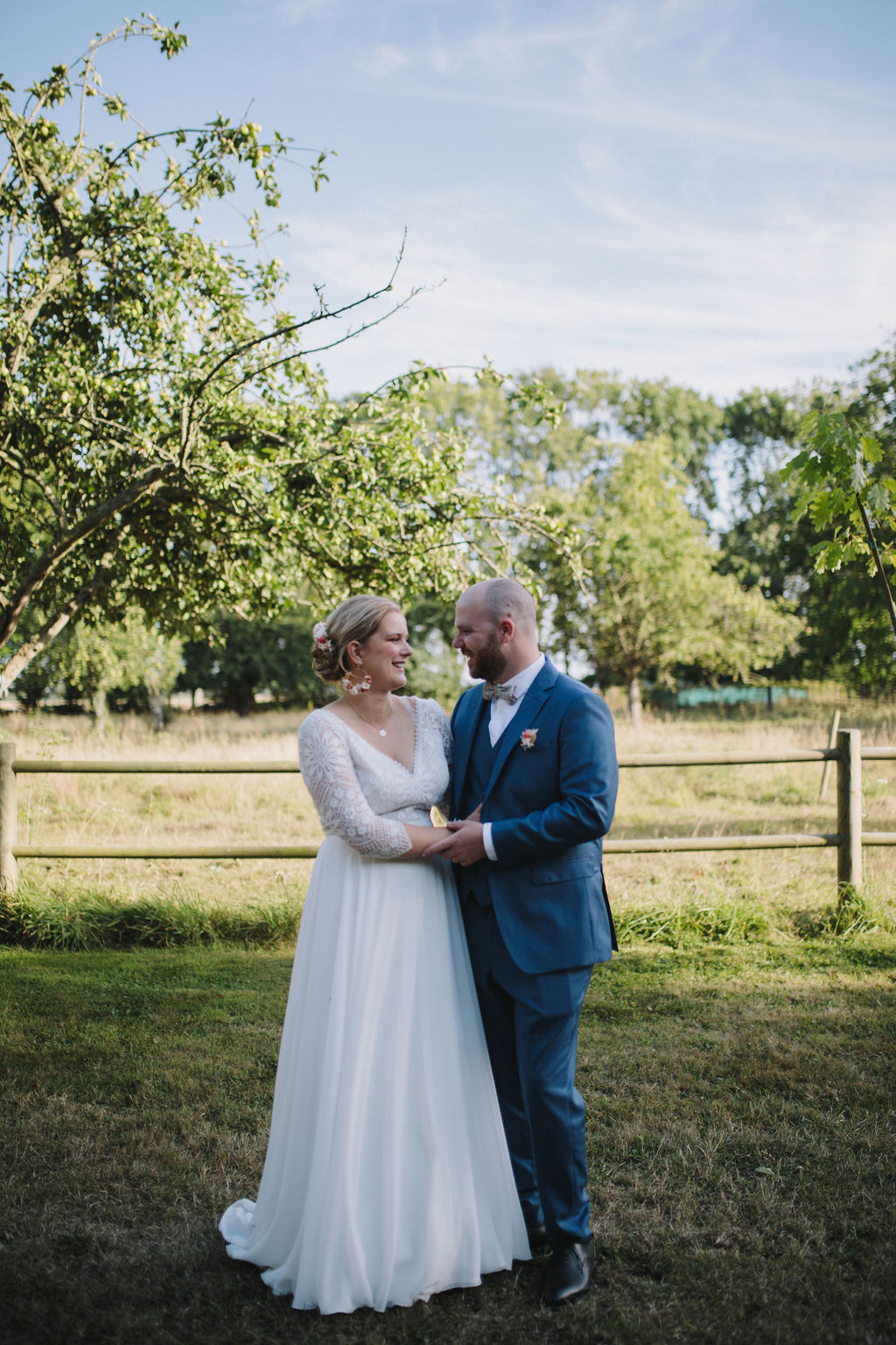 Notre mariage a failli être décalé, non pas à cause du Covid mais à cause de l’arrivée surprise de Madeleine… Nous avons découvert ma grossesse en novembre, quelques mois seulement après la demande en mariage et surtout après avoir réservé le lieu, et acheté la robe !