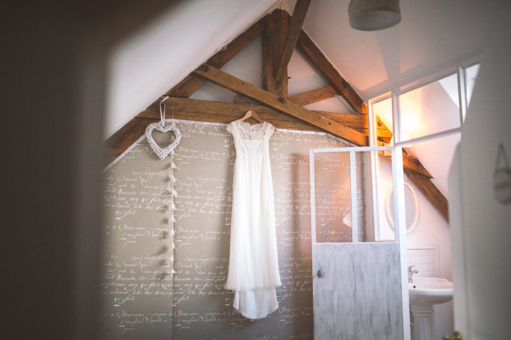 Robe de mariée et accessoires : Pour la cérémonie civile, j’ai trouvé ma robe chez Héroïnes. Ça faisait longtemps que je zyeutais leurs robes, et la première que j’ai essayée était la bonne.
