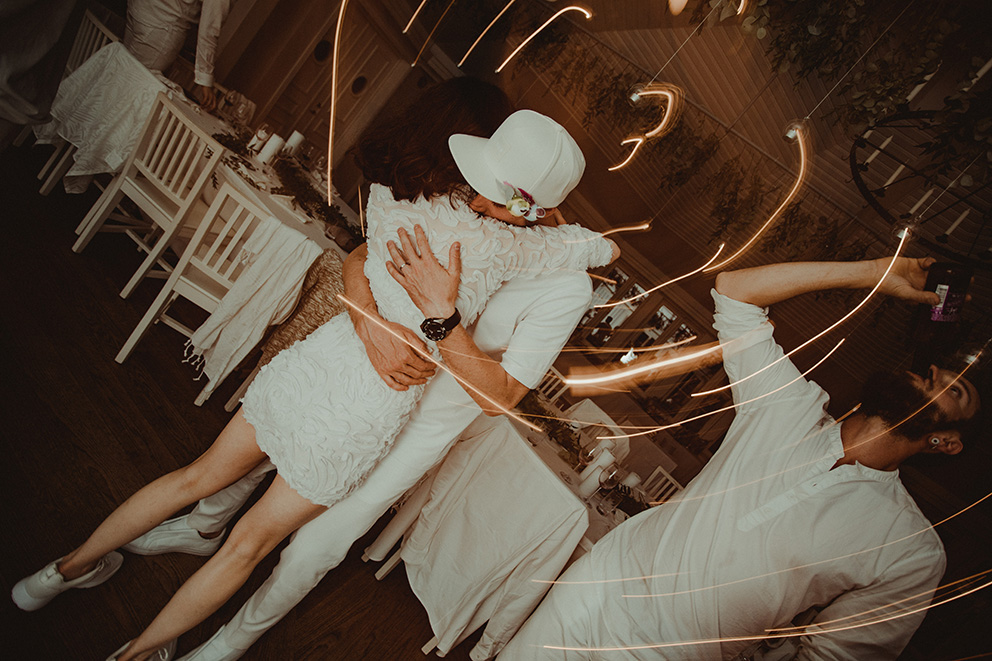 J'ai adoré les tenues des mariés et le dress code blanc pour tous les invités.