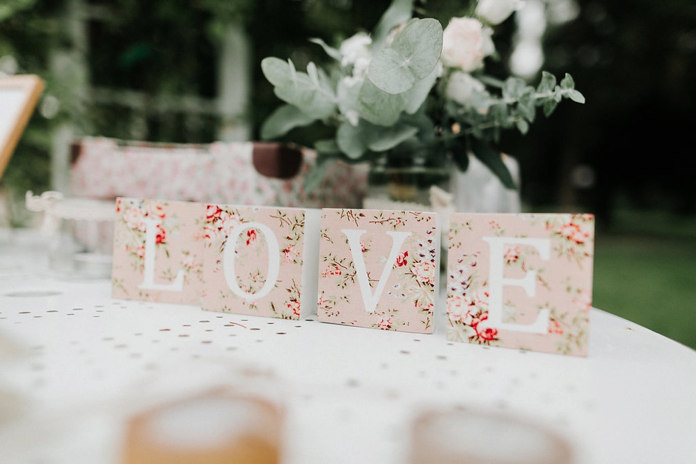 Pour être honnête, j’ai commencé à regarder ce que je voulais pour mon mariage un peu avant la demande officielle… mais on en parlait déjà ! J’avais alors une idée precise de ce que je voulais: un mariage champêtre, chic et convivial. Nous avons fait beaucoup de choses nous-mêmes. Pinterest et les blogs de mariages sont des sources d’inspirations inépuisables et j’ai la chance d’avoir un mari qui s’est vraiment impliqué dans nos préparatifs, nous avons réalisé toutes sortes de choses comme notre plan de table: une grande planche de bois recouverte d’un tissu “Liberty” sur lequel nous avons suspendu des cordelettes avec des pinces à linge pour maintenir les cartons des tables, des bocaux en verres avec toile de jute et dentelle qui ont servi de centre de table, des carafes chinées par ma grand-mère, des porte-noms en kraft avec masking tape dentelle… Nous avons eu des dimanches bien occupés par tous ces travaux manuels et il faut savourer tous ces moments car ils font aussi partie du mariage.
