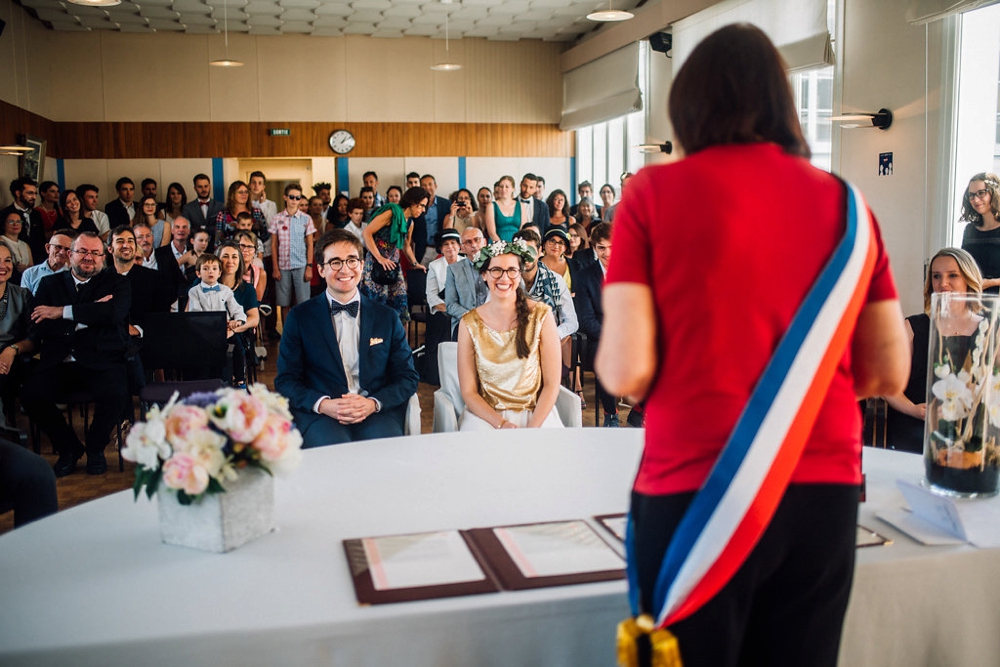 Les séances photos le matin à deux et en sortant de la mairie avec nos témoins (et notre combi Wolkswagen orange) ont été de chouettes respirations pour profiter du moment présent.