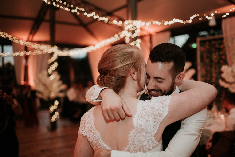 S’il y a un seul mot à retenir de notre mariage c’est bien EMOTION. Quel condensé en quelques heures ! Nous avions demandé à notre vidéaste que nous souhaitions avant tout qu’elle fasse ressortir l’émotion sur notre future vidéo, elle nous avait alors répondu que s’il y avait bien une chose qui ne dépendait pas d’elle c’était bien cela : l’émotion ne se décrète pas, elle en découle si elle est évidente. Et ce fut une évidence en permanence ce jour-là … De voir toutes ces personnes venant de partout pour nous, juste pour nous : en arrivant pour accueillir les gens avant la cérémonie je fus déjà submergé par un sentiment de gratitude envers toutes ces personnes qui étaient là simplement pour nous. Ce fut le cas tout le long et je fus même frustré de ne pouvoir passer assez de temps avec chacun tant je leur été reconnaissant d’être ici ce jour-là. Le moment le plus riche en émotion : impossible à choisir pour ma part, il y en eu non pas un mais tellement. Les préparatifs du matin avec mes témoins, l’entrée de Violette dans l’église, nos vœux et le partage d’alliances. A la fin de la cérémonie religieuse alors que tout le monde nous attendait à l’extérieur de l’église j’éclatais en sanglot en prenant ma désormais femme dans mes bras : un moment confidentiel tellement fort. Puis la sortie de l’église sous les rayons du soleil apparaissant et ce sentiment de jouissance. Ce fut par la suite une accumulation incroyable de discours et de mise en scène de la part de nos familles et nos excellents (que dis-je : incroyables) témoins. Des discours poignants d’amour et d’humour, une chorégraphie pleine de clins d’œil et réunissant des gens de manière si improbable. Le discours de Violette, qui formulait à voix haute la partition de son amour pour moi. Mon propre discours où mon cœur s’exprimait pleinement tout en battant la chamade, juste avant cette danse à deux sur un ton de valse, mélange de stress et de complicité. Tout cela entrecoupé de moments privilégiés à deux pendant notre séance de couple, le temps de faire une pause émotionnelle justement : un moment tellement bienvenu au milieu de ce tourbillon de passion. Un moment pour se retrouver à deux et commencer à comprendre ce qui nous arrive. Je n’aurai jamais pensé possible d’être autant ému que ce que j’ai pu ressentir tout au long de cette journée. Ce fut un moment permanent d’émotion pendant lequel toutes ces personnes nous ont donné de l’amour. Impossible d’être étanche à tant d’émotions lorsque l’on sait que cette journée scelle l’union avec l’amour de ma vie.