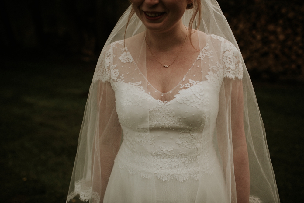Robe de mariée : J’avais déjà une idée de la robe idéale : quelque chose de simple et de fluide, une belle dentelle, pas de tulle et surtout un voile ! Les premiers essayages ont commencé un an avant le mariage accompagnés par ma témoin enceinte de 7 mois ! Ils se sont également poursuivis avec sa petite Rose en poussette par la suite 😉 J’ai adoré ces moments de partage ! Marie Laporte est une des premières créatrices chez qui je me suis rendue et j’ai très vite adorée son univers. J’ai voulu me rendre dans d’autres maisons pour essayer d’autre style mais le modèle « Coralie » m’est resté en tête 😉 Finalement ma robe est une des premières que j’ai essayée ! Une fois la robe commandée j’ai attendu chaque essayage avec beaucoup d’impatience et chaque RDV a été magique ! L’atelier est magnifique et les conseillères sont adorables et de bons conseils. En repartant avec ma robe, j’étais déjà nostalgique de ne plus revenir…